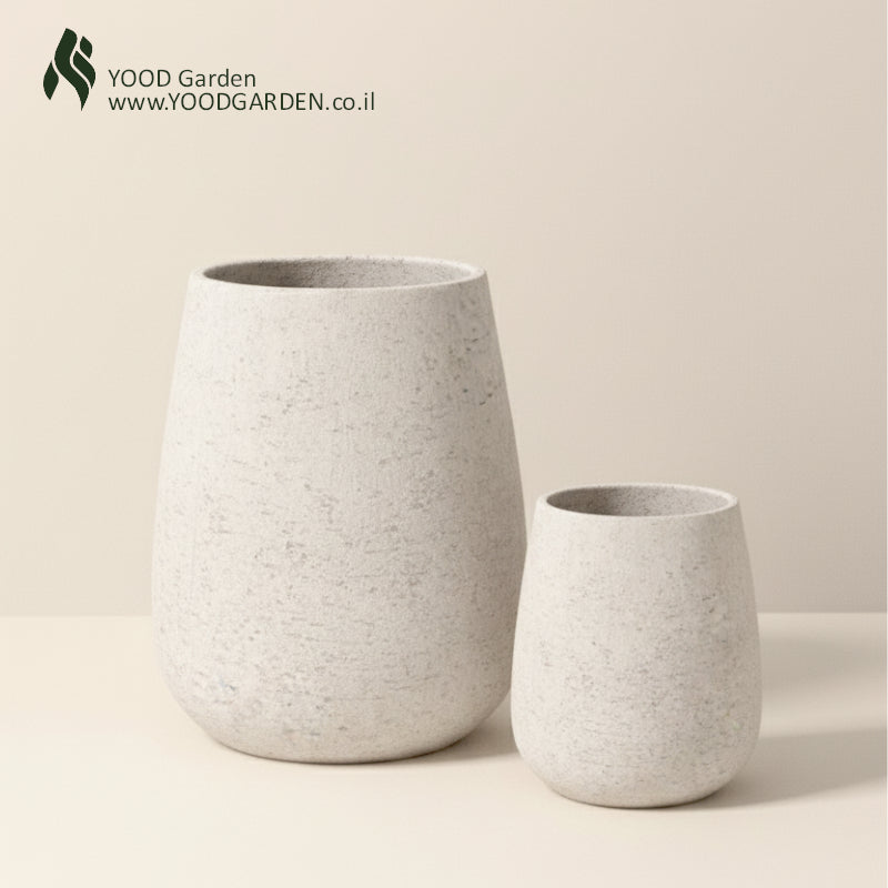 זוג כדי בטון המשלבים מראה בהיר ומעודן עם טקסטורה מקושקשת שמעניקה תחושת טבעית. העיצוב המינימליסטי והמגע השמימי שלה יוצרים נוכחות עדינה אך מרשימה, המוסיפה לחלל תחושת קלילות והרמוניה.
